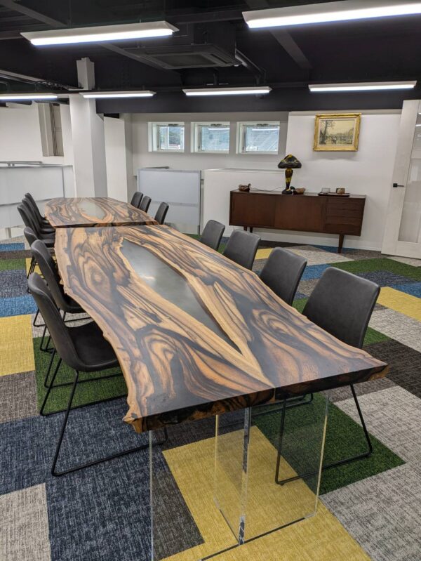 黒柿輪切り一枚板コーヒーテーブル(アイアン脚) 掵75×奥60×高70㎝ 黒柿一枚板ブックマッチ ダイニングテーブル(アイアン脚) 掵105×奥75×高70㎝ 黒柿一枚板ブックマッチ センターテーブル(アイアン脚) 巾105×奥75×高47㎝ 黒柿一枚板ブックマッチ レジンビックテーブル(アクリル脚) 巾220×奥96×高69.5㎝ ... 続きを読む