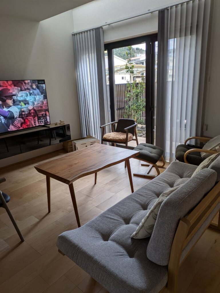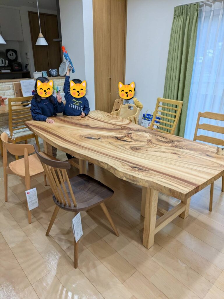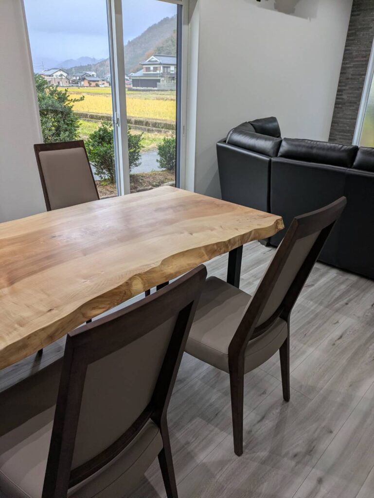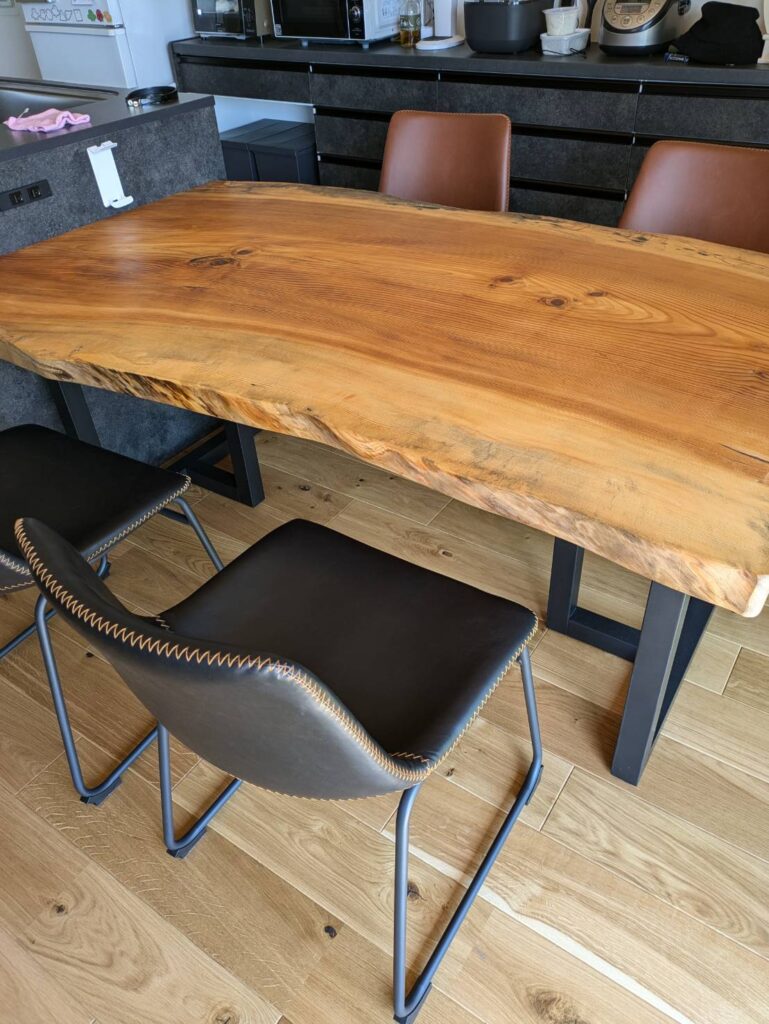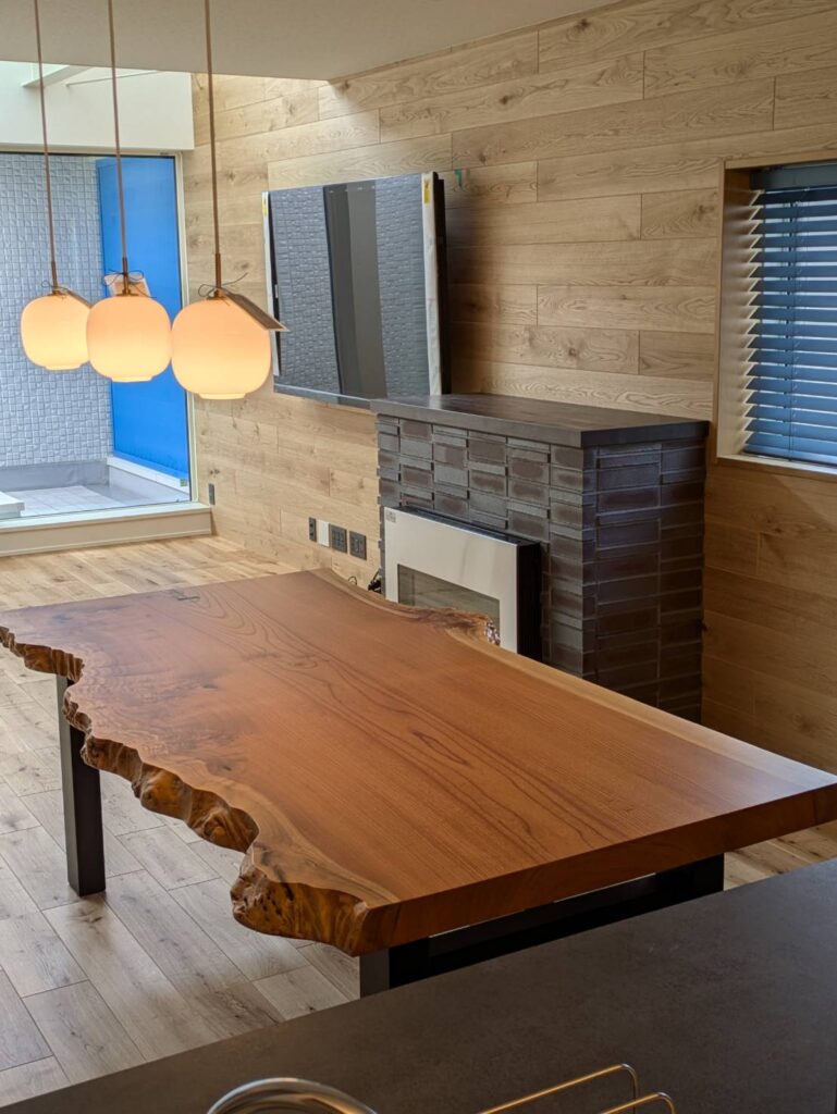 モダンな空間に一枚板テーブル